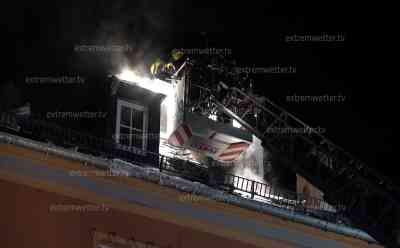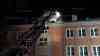 Dachstuhl brennt komplett aus, Bewohner müssen in Notunterkunft untergebracht werden (on tape), dutzende Feuerwehrleute im Einsatz