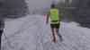 - Läufer mit kurzer Hose und T-Shirt im Schnee
