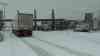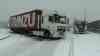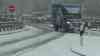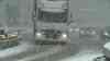 Schneechaos A 96 in Bayern: LKW stehen auf Autobahnrastplatz quer und kommen nicht mehr voran, Räder drehen durch, dichtes Schneetreiben und Starkschneefalle (live on tape), B 12 stundenlang gesperrt