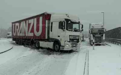 Feuerwehr muss B 12 sperren, Stau und viel Wartezeit für Autofahrer, Schneefälle halten weiterhin an