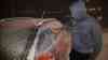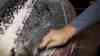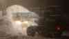 Schneeberge werden auf dem Fichtelberg abgetragen, Minusgrade und leichter Schneefall im Erzgebirge