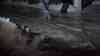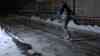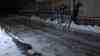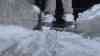 Eisregenchaos - Schlittschuhe als Fortbewegungsmittel: Kameramann fährt auf Straßen und Gehwegen mit Schlittschuhen, Fußabdrücke gefrieren auf Gehwegen sofort, Seitenscheibe aus Eis bricht