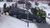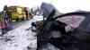 Glatteis - schwerer Verkehrsunfall im Erzgebirge, Räder aus Fahrzeuge gerissen: Nieselregen und Temperaturen um 0 °C verursachen schweren Verkehrsunfall in Schönfeld, Bundesstraße gleicht Trümmerfeld