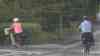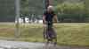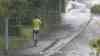 Sportler, Radfahrer und Sonntagsausflügler flüchten vor dem Regen, Temperatur auf 20 °C gefallen