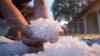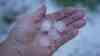 Schweres Hagelunwetter mit Golfballhagel in Bayern: Hagelmassen und 5 cm großer Hagel, Winterlandschaft nach heftigen Unwettern, Hagel mehrere Zentimeter hoch