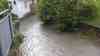 Unwetterwarnung - heftige Gewitter über Bayern: Bäche führen Hochwasser, Wasser schießt den Straßen entlang, Felder stehen unter Wasser