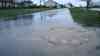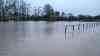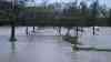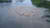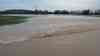 Feuerwehr im Dauereinsatz, Wasser drückt aus Kanalisation, Fußballplatz unter Wasser