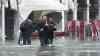 (Hochwasser, Venedig extrem) Hochwasser Venedig: Schon wieder enormes Hochwasser in Venedig, Sirenen heulen in Venedig (on tape), Frühstück im Hochwasser, Menschen hüfthoch im Wasser, Ausnahmezustand in Venedig