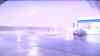 Eindrucksvolle Aufnahmen von Sabines Kaltfront, Starkregen weht regelrecht waagerecht über Raststätte