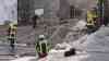 Brand in ehemalige Schwimmhalle Oberwiesenthal: Dichter Rauch dringt aus ehemaliger Schwimmhalle, Feuerwehren unter schwerem Atemschutz im Einsatz, vermutlich Brandstiftung